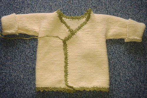 Hier ein Bild von der unfertigen jacke, die Kante habe ich wieder aufgetrennt und noch einmal gehäkelt, allerdings nur einfach eine Reihe rundherum.